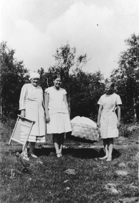 Pyykillä vas. Naimi Vilppula, Malmi ja serkkunsa Marja Pietilä.