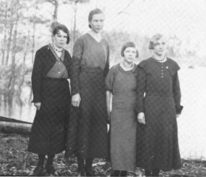 Vuoksen rannalla serkkuja ja pikkuserkkuja. Lahja Nousiainen, Salme Rantalainen, Sirkka Nousiainen, Vieno torkkeli.
