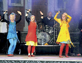 Tilaisuuden monipuolisesta ja taidokkaasti esitetystä musiikista vastasivat paikalliset ammattilaiset kanttori Maria Verronen ja laulunopettaja Solja Virta sekä Soljan johtama lapsikuoro Taikasävel. Säätiön nykyinen kunniapuheenjohtaja Juhani Kaatonen kertoi Räisäläisten Säätiön perustamisesta ja sen monipuolisesta toiminnasta kuluneina vuosikymmeninä. Värttinän ulkoilmakonserttiRäisälä-juhlan yhteydessä oli juhlavierailla mahdollisuus nauttia Suomessa harvinaista herkkua eli kuulla kansainvälistä mainetta niittäneen Värttinä-yhtyeen musisointia lauantai-iltana Vuojoen kartanon puistossa. Sateiseen ja kylmään lauantai-iltaan saapui noin 150 henkeä konserttiyleisöä. Juhlamessu ja kunnianosoituksetSunnuntaina pidetyssä juhlamessussa toimi liturgina kirkkoherra Asko Riihimäki ja saarnan piti kirkkoherra Antero Honkkila. Kanttorina oli Maria Verronen ja tekstinlukijoina Virpi Verronen- Lepistö ja Maria Nieminen. Aarne Pelkosen lauluesitykset jumalanpalveluksessa olivat mieleenpainuvia elämyksiä. Juhlamessun jälkeen suoritettiin kunniaosoitukset Sankarihaudalla ja Karjalaan jääneiden vainajien muistomerkillä. Musiikkiesityksestä huolehti Esa Laihonen, trumpetti. Puheen piti Janina Jalonen. PääjuhlaPääjuhlassa oli runsaat 300 vierasta. Pääjuhlan avasi Räisäläisten Säätiön hallituksen puheenjohtaja Jouko Perttu todeten, että Eurajoelle sijoittui aikanaan yli 350 räisäläistä ja he löysivät näin täältä uuden asuinsijansa. |