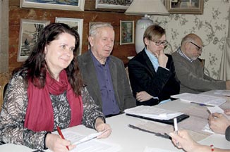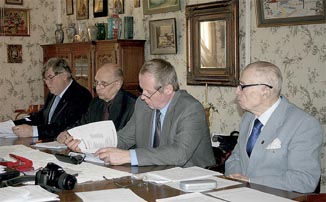 Valtuuskunnan kokousväkeä, vasemmalta Jouko Perttu, Sakari Honkanen, Kimmo Rouhiainen ja Juhani Kaatonen.