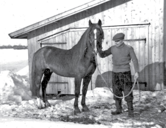 Kirjoittajan isä Ahti Raja-aho sekä ori Eri-Elo.