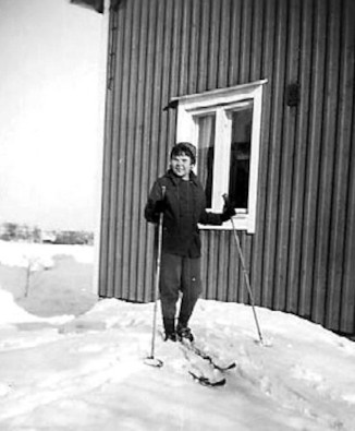 Kirjoittaja hiihtämässä kotitalonsa pihassa v. 1954