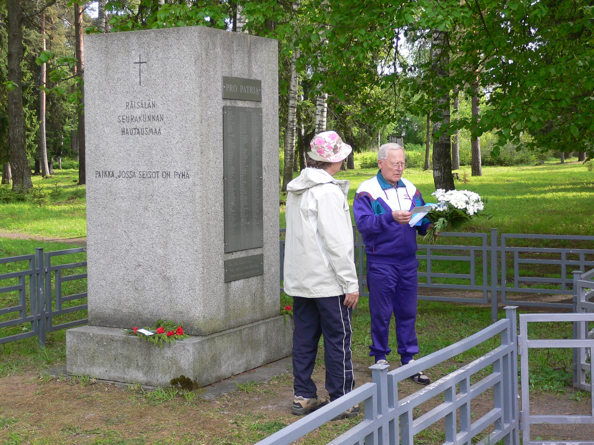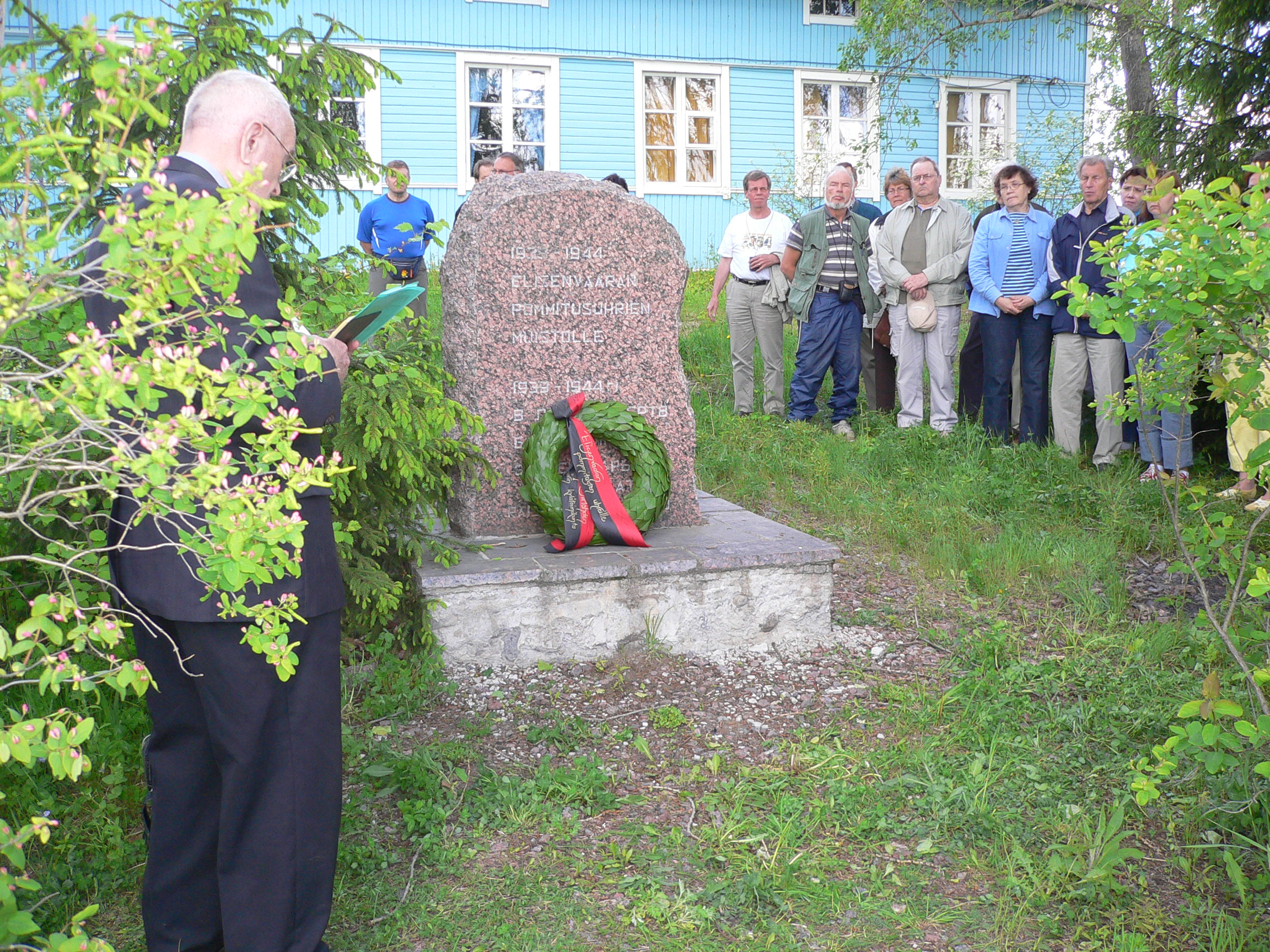 Kukkalaitetta laskemassa Makkarangrillausta ja arvontaa Muistohetki Elisenvaarassa