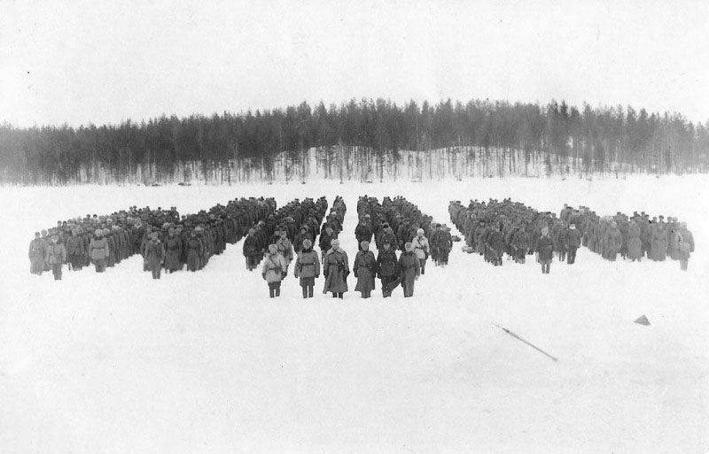 Ivaskanmäen reserviläiset kertausharjoituksissa 18.8.1935 Perkjärvellä.Tästä ikäluokasta suurin osa oli mukana Er.P 6:n riveissä talvisodassa. Sodan pilvet nousevatLokakuun 9 p:nä vuonna 1939 oli tuhatkunta karjalaista soturia järjestäytynyt valmisukatselmusta varten. He seisoivat hiljaa, päättäväinen ilme kasvoillaan avoneliössä. Erillinen pataljoona n:o 6 oli juuri päättänyt liikekannallepanonsa suunnilleen samassa kokoonpanossa kuin kertausharjoituksissa 1937. Jokainen tiesi, että parisen kuukautta aikaisemmin syttynyt maailmanpalo, joka oli tuhonnut Puolan ja kahlehtinut Latvian, Liettuan sekä heimokansamme Viron itsenäisyyden, uhkasi nyt hänen omaa isänmaataan, ensimmäiseksi hänen synnyinseutuaan. Katselmusta seurasi käskynjako upseereille ja sen jälkeen yksiköiden päälliköt kiiruhtivat välittömästi autoilla majoitustiedusteluun ja pataljoonan sotavahvuinen 1037 miestä sekä 162 heovsta ja ajoneuvoa käsittävä n. 2-3 km pitkä rivistö lähti liikkeelle etelään Raudun suuntaan, kohti tuntematonta tulevaisuutta. Päivät ja viikot kuluivat jopa kuukausikin. Kiireellisen liikekannallepanon aiheuttama jännitys osoitti laimenemisen oireita, kun Moskovassa käydyt neuvottelut pitkittyivät. Koti-ikävä alkoi vaivata samoin kuin huoli omaisten toimeentulosta. Sota alkoiViranomaiset olivat antaneet edellisenä päivänä määräyksen koko Raudun kylän tyhjentämisestä, mutta tyhjentämistä ei luonnollisesti ehditty edes aloittaa. Seurauksena oli sekasorto ja huomattavien omaisuusarvojen menetys. Monin paikoin joutuivat sotilaat toteamaan järkyttäviä näkyjä siviiliväestön lähdöstä. Irtautmissuunnitelmaan kuului rakennusten perusteellinen hävittäminen polttamalla, jotta viholliselle ei jäisi talven selkään edullisia majoitusmahdollisuuksia. Eräskin isäntä pyysi lupaa polttaa talonsa itse, meni sisälle, koppasi radion kainaloonsa, sytytti talonsa tuleen, nosti kätensä tervehdykseen ja lausui: "Hyvästi koti". Raudussa oli sytytetty asemien edessä olevat rakennukset tuleen ja koko taivas hehkui verenkarvaisena seudun yllä. Toista sataa rakennusta paloi jättiläiskynttilöinä tyynessä talviyössä. Näky sai miehet sanattomiksi. Pappilan pöytähopeidenkin kerrotaan jääneen tulen saaliiksi. Samoin tuhoutui osuuskaupan koko varasto, kun talo räjäytettiin. Valitettavasti samalla sai surmansa pari sotilasta, jotka tietämättä räjäytysaikeista olivat menneet etsimään jotain mukaan vietävää. Erikoisen sääliksi kävi karja, joka oli jätettävä joko kasapäin ammuttuna palaviin rakennuksiin tai pihoille. Noin sadan lehmän vauhkoontunut karja hajosi menetymään talviseen maisemaan. Jonkin verran sikoja ehdittiin ottamaan mukaan muonan jatkoksi, mutta useimmat oli jätettävä. Harmistuneet sotilaat viiletelivät eläinten vatsta auksi ja valuttivat sekaan sytytyspullojen sisällön arvellen höystävänsä tulossa olevalle viholliselle eväät maittavammaksi. Toisena sotapäivän poltettiin ja räjäytettiin loputkin Raudun taloista, viimeksi Raudun komea kivikirkko.