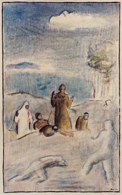 Näkyvyyttä haittasi asemien edessä palamaan sytytetyn ladon valopiiri. Tähystäessään kiikarilla etumaastoon huomasi Lindberg yllätyksekseen vihollisjonon ryömivän äänettömästi jo aivan panssarikaivannon juurella. Matkaa ei ollut kuin jokunen metri. Hälyyttämättä miehiään nousi rauhallinen Lindberg kuopastaan esteen reunalle ja tipautti - heittää ei tarvinnut - toisen munakäsikranaateistaaan panssarihautaan. Mainittakoon, että Lindberg tunsi käsikranaattinsa rakenteen vain selitysten perusteella. Seurasi räjähdys ja sitten täysi äänettömyys. Silminnäkijät kertovat Lindbergin tulleen esiin suojastaan, minne hän oli livahtanut räjähdyksen ajaksi, ja ryhtyneen puoliääneen lukemaan ruotsinvoittoisella suomellaan tuloksia. Paukusta olikin tullut täysi kymppi. Kymmenen vihoillista makasi liikkumattomina yhdessä läjässä haudan pohjalla. Keljan vastahyökkäyksen loppuvaiheessa. Maalauksen on tehnyt Armas Lähteenkorva 1945, pohjana 27.12.1939 piirtämänsä luonnos. Edessä oleva kaatunut on Er P 6:n kersantti Reino Marila. Konepistoolimies on Tiurin poika Kaarlo Ohvo, jonka sotatie katkesi vääpelinä Lempaalassa kaksi vuotta myöhemmin. Irtaumisvaiheessa oli vihollinen sitä seuraavana yönä suomalaisten huomaamatta noin komppanian vahvuisena osastona keinotellut itsensä kosken yli pitkin räjäytetyn rautatiesillan palkkeja ja pesiytynyt suurehkon autokorjaamon rakennuksen betonikellariin. Ensimmäiset kiirelliset valtausyritykset tuottivat suomalaisille melkoisia tappioita, ja vihollinen piti sisukkaasti puoliaan. Valtausyrityksissä kaatui mm. divisioonan esikuntapäällikkö, majuri Sahlgren. Ammunan aikana onnistui parin rohkean jalkaväkimiehen heittää muutamia sytytettyjä savurasioita autokorjaamon kellariin, Tämä oli viholliselle liikaa. Puolensataa nälkiintynyttä miestä ryömi esiin ja antautui vangeiksi. Koska ammuksia oli ehdottomasti säästettävä samoin kuin kallisarvoista tykkiäkin, tykki käytti kaikkiaan vain kaksikymmentä kranaattia ja moni lihavakin maali oli jätettävä rauhaan, Välipalaksi ammuttiin kivääreillä rannalla liikuskelevia vihollisia ja eräs puuhun kiivennyt tähystäjä pudotettiin oksalta. Jouluateria kaikissa yksiköissä oli runsas ja majapaikoissa loistivat kuusten kynttilät. Tosin kuusten koristelu oli hiukan erikoista, patruunavöitä, käsikranaatteja ja muita nakaraa aikaa muistuttavia varusesineitä. Lieneepä eräillä joulupukeilla ollut kaasunaamaritkin kasvoillaan partanaamion asemasta. Keljan vastahyökkäysKeljan hyökkäys oli vaatinut Er.P 6:lta raskaat uhrit. Aamupäivän kuluessa oli sen taistelevasta osasta kaatunut tai haavoittunut suunnilleen kolmannes. Upseereita kaatui tai haavoittui yhteensä kahdeksan. Pahin hankauskohta oli yhteistoiminta tykistön kanssa, Laukausmäärältään vähäinen oma tykistötuli jäi luultavast mitättömäksi. Ensimmäisen joulupäivän aamuna alkaneet taistelut päättyivät suomalaisten torjuntavoittoon illalla 27.12. kestettyään taukoamatta melken kolme vuorokautta. Vihollinen ei enää uudistanut yrityksiään, Sen taistelukentälle jättämätä kaatuneet ja materiaali olivat varoittavana esimerkkinä. Hyökkäys Suvannon yli oli tyypillinen venäläisille, joiden taktiikka oli tuolloin kaavamaista. Se häikäilemättömyys, jossa se suoritettiin, osoitti että ihmishengelle ei annettu suurtakaan arvoa. Suomalaisten toimintaa Keljassa luonnehtii eräänlainen suunnittelemattomuus. Ylempi johto divisioonan portaasta alkaen ei saanut oikeita ilmoituksia edestä, joten se uskoi etulinjan liian optimistiseen tilannekuvaukseen ja käsitykseen, että "kyllä tästä selvitään". AK:n taholta kuitenkin katsottiin tilannetta toisin silmin ja valmistauduttiin pahimman varalta, koska odotettiin vihollisen uutta entistä vakavampaa yritystä, joka sitten tulikin iltayöstä 26.12. Suomalaisten suurimpana heikkoutena on pidettävä tykistön ja jalkaväen yhteistoiminnan puutetta vastahyökkäysten suorittamisessa. Kun pakokauhu jäälle alkoi, muistutti taistelu metsästystä tai oikeammin selvää teurastusta. Venäläiset olivat pääasiassa ilman lumipukuja, ja kun sellaiset tarkka-ampujat kuin Marilan veljekset, Puustiset, Puusniekat ja monet muut pääsivät kiväärin taakse ja maali oli musta, tuli aina "laaki ja vainaa". Vihollisen tappiot olivat valtavat. Vaikka Keljan hyökkäys suoritettiin erinomaisen sisukkaasti ja vaikeissa oloissa, siinä oli eräitä taktisia kauneusvirheitä, tulituen järjestelyssä ja muussakin. Hätäiltiin liiaksi, Valmisteluihin ei ollut tarpeeksi aikaa. Patruunat yleensä riittivät, mutta käsikranaateista ja kasapanoksista oli kova puute. Kun vihollisasemat oli vallattu, voitiin laskea lopulliset menetykset, mitkä olivat yhden päivän osalle harvinaisen raskaat. Viisikymmentä kaatunutta ja satakunta haavoittunutta merkitsti kokonaisen taisteluvahvuisen komppania menetystä. Lisänä oli suuret upseerimenetykset. Keljan osalta kiitos kuuluu varsinkin Er.P 6:lle, jonka saavutus tuli nyt armeijakunnassa yleisesti tunnetuksi. Taipaleen veriset viikotSillä aikaa kun ErP 6 oli Saaprussa toipumassa Keljan raskaan voiton seurauksista, taistelut jatkuivat Taipaleessa verisinä ja suomalaisten voimia kuluttavina. Vilkkaimpina päivinä vihollisen tykistö tuhlasi Taipaleessa vuorokaudessa 15 - 20 000 kranaattia eli noin 3000 kranaattia rintamakilometriä kohti. Lisäksi kylvivät lentolaivueet maastoon pommilastejaan, josta saattoivat tukilinjan korsut heilahtelemaan. Konekivääreitään ahkerasti käyttelevät hävittäjät olivat kiusana.