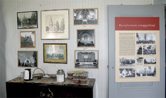 Näyttelyssä oli esillä Räisälän kirkkoon ja Räisälän kansanopistoon liittyvää aineistoa.