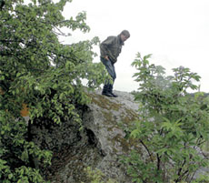 ![]() Riku Kauhanen esittelee kuppikiveä Hovinsaaressa. Räisälän rikas historia vie seikkailuunOllaan tutustumassa Räisälän historiaan, uusikaupunkilaisen Erä-Aimon Karjalan retkellä. Räisälä-museon vaihtuva näyttely Kiukaisten Wanhassa Pappilassa