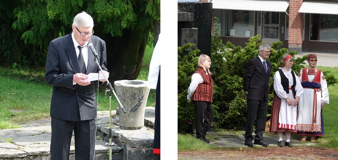 Kunnianosoitus sankarihaudoilla ja Karjalaan jääneiden muistomerkillä.