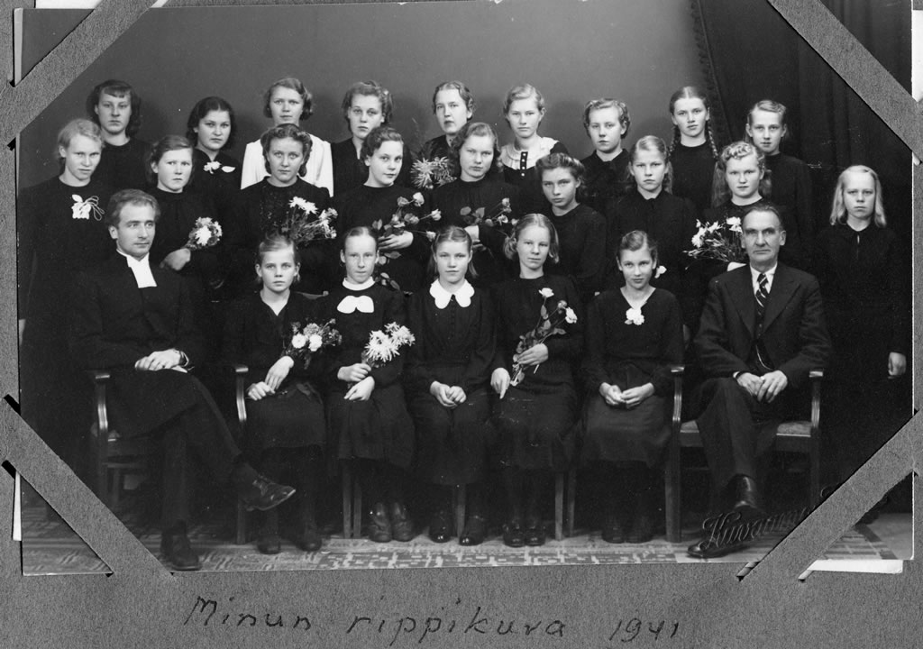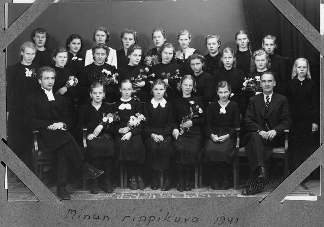 Isompi 2981x1981 kuva Tunnistaako kukaan?Sain noin vuosi sitten enoni Veikko Äijön (Tiuri) jäämistöstä pari valokuvaa. Toisessa on rippikouluikäisiä tyttöjä 1920-luvun loppupuolelta ja toisessa hieman vanhempia nuoria 1930-luvun alkupuolelta. Vuosiluvut ovat arvioita. Vieläkö löytyy henkilöitä, jotka tunnistavat kuvattuja tai, vielä parempaa, ovat itse mukana kuvissa? Vastaukset pyydän lähettämään osoitteella