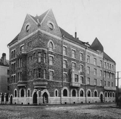 Juho ja Maria Lallukkaja sen Helsingissä ylläpitämästä taiteilijakodista. Lallukat Räisälässä ja KäkisalmessaJohan eli Juho Lallukka syntyi 3. helmikuuta 1852 Karjalankannaksella, Vuoksen varrella, Räisälän pitäjän Humalaisten kylässä pienviljelijä Juho Lallukan ja hänen vaimonsa Maria Haikosen viidestä pojasta neljäntenä. Koti oli köyhä ja Juho-poika kävi paimenessa. Luku-, kirjoitus- ja laskutaito oli opittava ilman varsinaista koulunkäyntiä, mutta silti hänestä tuli mainio ja uuttera lukija sekä taitava luvunlaskija. Lähellä sijaitsevan Sutken hovin omistajan, venäläissyntyisen kauppiaan Kapiton Kanninin poikien kumppanina Juho tutustui vauraiden ihmisten elämään ja alkoi haaveilla kauppiaan urasta. Isä patisti hänet räätälin oppiin, mutta tästä hän pian erkani hakeutumalla 1870 Kanninin puotipojaksi ja kauppakirjuriksi Käkisalmeen. Hän perehtyi kaupankäynnin saloihin niin, että venäläinen kauppias M. Karmasin otti hänet palvelukseensa ja luottomiehekseen. Käkisalmessa Juho pyysi vaimokseen kruununvoudin tytärtä, mutta tämän isä torjui aikeen tylysti sen epäsäätyisyyden vuoksi. Tämän vastoinkäymisen ja nöyryytyksen masentamana Juho palasi 1878 Räisälään ja ryhtyi maakauppiaaksi. Kauppahuoneena oli Matti Jääskeläisen kestikievarin riihi. Juho nai Jääskeläisen tyttären Marian eli Marin, joka oli häntä kuutisen vuotta nuorempi, ja asettui kotivävyksi. Marin isä kuoli ja äiti avioitui uudelleen. Isäpuoli osti Marin tilaosuuden. Itsenäisenä kauppiaana ja hieman varallisuutta tukenaan Juho palasi 1879 Käkisalmeen Mari matkassaan. ![]() Käkisalmessa Juho sai porvarioikeudet. Suomalainen kauppias oli siellä tuolloin vielä harvinainen. Muutaman vuoden kuluttua Lallukka oli kaupungin kauppiaista suurin ja monipuolisin. Hän osallistui toimeliaasti kaupungin kulttuuririentoihin ja kunnallishallintoon. Hänestä tuli kotiseutunsa "kansallismielisten" henkinen johtaja. Tukkukauppiaana ViipurissaKäkisalmen ja Sortavalan akselilla oli kaksi erityisen merkittävää kauppiasta, Juho Lallukka ja kurkijokelainen Jaakko Häkli (1848-1902). Heillä oli samansuuntaisia ajatuksia suomalaisen kauppiaskunnan kehittämiseksi ja toimista kansallisen herätyksen hyväksi. Tämä oli Perustana myös sille, että he ja Vilhelm Paischeff (1862-1899) perustivat 1891 Viipuriin tukkukaupan, toiminimen Häkli, Lallukka ja Kumpp. Kaupallinen toiminta Viipurissa oli tuohon aikaan paljolti venäläis-, saksalais- ja ruotsalais-peräisten yrittäjien käsissä. Kolmen pätevän suomalaisyrittäjäin omistaman ja valppaasti johtaman tukkuliikkeen syntymistä pidettiin kotimaisen liikemiestaidon vaiheiden merkkitapauksena. Liike kehittyi ripeästi suuryritykseksi ja aloitti suomalaisten voimakkaan murtautumisen kaupalliseen valtapiiriin. Yritys välitti sekä kotimaisia että ulkomaisia tavaroita. Paischeffin kuoltua 1899 Lallukka ja Häkli jatkoivat yritystä kaksin. Häkli kuoli 1902 ja Lallukka osti hänen osuutensa yrityksestä. Huhtikuussa 1912 Lallukka möi tukkukaupan Häkli, Lallukka ja Kumpp.- nimiselle osakeyhtiölle, jonka osake-enemmistön hän omisti. Hänestä tuli yhtiön johtokunnan puheenjohtaja ja liikkeen johtaja. Muiksi osakkaiksi tuli hänen lähimpiä apulaisiaan ja Maria Lallukka. Monessa mukana![]() Liikeyritysten johtamisen ohella Lallukka oli monessa muussakin mukana. Viipurilaiset liikemiehet perustivat 1891 Teollisuuden- ja liikkeenharjoittajain Seuran Pamauksen edistämään suomenkielistä yritystoimintaa sekä saadakseen kansalliset näkökohdat otetuiksi huomioon vaaleissa ja valtiopäivillä. Lallukka toimi alusta pitäen Pamauksessa, josta tuli väylä moniin luottamustehtäviin. Hänet valittiin Pamauksen puheenjohtajaksi ja työväenyhdistyksen puhujaseuran esimieheksi. Nämä yhteisöt asettivat hänet suomalaisten valtuustoehdokkaaksi. Hänet valittiin valtuustoon 1899, ja siinä hän pysyi loppuikänsä. Lallukan into ja taloudellinen tuki olivat ratkaisevia monissa kansansivistyshankkeissa. Niitä olivat etenkin Kanneljärven ja Räisälän kansanopistojen sekä Etelä-Karjalan Nuoriseurain Liiton perustaminen ja toiminnan ylläpitäminen. Erityisen voimakkaasti Lallukka tuki teatteriharrastuksia. Hän oli perustamassa Viipurin Maaseututeatteria ja toimi teatteriyhtiön johtokunnan puheenjohtajana vuodesta 1902 elämänsä loppuun. Teatterin toiminta oli moneen otteeseen ratkaisevasti hänen taloudellisen tukensa varassa, joten hän ei aiheetta viljellyt sanontaa "miu teatteriin". Lallukka oli idealisti, joka uskoi kansanvalistuksen voimaan myös sortovuosien paineissa. Yrityksen menestys ja oma vaurastuminen mahdollistivat lukuisien muidenkin kulttuurihankkeiden merkittäviin rahallisen tukemisen. Niinpä hän avusti muun muassa runoilija J. H. Erkon (1840-1906) kirjailijantyötä, osti kuvataidetta, rahoitti musiikkitoimintaa ja muisti lahjoituksilla myös Wiipurilaista Osakuntaa. Toisaalta lahjoituksiin liittyi pyrkimystä korjata sosiaalisia epäkohtia. Kulttuuri- ja sosiaaliharrastusten ohella Lallukalla riitti voimia toimintaan kunnallisissa ja valtiollisissa asioissa. Hänen valitsemisensa kaupunginvaltuuston puheenjohtajaksi osoitti suomalaisuuden rintaman voimistumista. Valtiopäivämiehenä hän oli 1901-1903. Tiloja ja talojaYritysvarallisuuden ohella Lallukalle kertyi myös maaomaisuutta. Hän osti kartanoita ja maatiloja lähes yksinomaan venäläisiltä aatelisilta. Arvokkaimmat kiinteistöt sijaitsivat hänen synnyinpitäjässään, josta hän hankki omistukseensa Räisälän hovin, pitäjän suurimman, ja Pudorian hovin, jonka hän luovutti kansanopiston käyttöön, sekä Viipurin lähistöllä, jossa hän omisti Liimatan hovin. Vuonna 1912 hänen hallussaan oli maata 3 000 hehtaaria. Arkkitehti Allan Schulmanin (1863-1937) suunnittelema Lallukan liike- ja asuintalo Viipurin Repolankadun ja Viskaalinkadun kulmauksessa valmistui 1906. Se oli suomalaisen tukkukaupan ja suomalaisuude