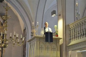 Juhlasaarnan piti Jorma Helasvuon tyttärenpoika teologian tohtori ja dosentti Niko Huttunen. Pallosalama poltti heinäkuussa 1910 puisen, vuonna 1763 valmistuneen kirkon. Juhlasaarnassa tultiin Matteuksen evankeliumin kautta Johannes Kastajaan. Hänen julistuksensa ei ollut lempeimmästä päästä: ”Jokainen puu, joka ei tee hyvää hedelmää, kaadetaan ja heitetään tuleen. Minun jälkeeni tulee toinen joka, kastaa teidät Pyhällä Hengellä ja tulella. Jyvät hän kokoaa aittaansa, mutta ruumenet hän polttaa tulessa, joka ei koskaan sammu”. Niko Huttusen saarnan mukaan kirkon paloa on pidetty huonona ennusmerkkinä. Johanneksen ennustus Jeesuksesta teki saman vaikutuksen, jonka kirkon palo räisäläisiin. Päätös uudesta kirkosta tehtiin nopeasti ja suunnitelmat tilattiin kirkkoarkkitehti Josef Stenbäckiltä. Piispa O. I. Colliander vihki uuden kirkon käyttöön 15.12.1912. Niko Huttusen mukaan Räisälän kirkon mieleenpainuvin sanoma lienee tiivistetty alttarin molemmilla reunoilla olevien pilarien sanoihin ”Armo” ja ”Rauha”. Juhlapäivä jatkui muistonäyttelyn avaamisella ja kirkkokahveilla Euran seurakuntakeskuksessa. Räisäläisten säätiön hallituksen puheenjohtaja Antti Kuisma kertoi avauspuheenvuorossaan Räisälän kirkon vaiheista ja muistonäyttelyn sisällöstä sekä syntymisestä. Nykyinen Räisälän kirkko on seurakunnan 4. kirkko. Koska edellinen paloi, päätettiin uusi rakentaa kivestä. Kurikkalaiset Samuli ja Anton Hakala pääsivät töihin elokuussa 1911 Uusi kirkko vihittiin käyttöön 15.12.1912.