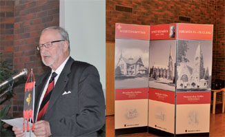 Räisäläistä juhlayleisöä Euran seurakunta- keskuksessa Räisälän kirkon 100-vuotisjuhlassa. Kirkkoarkkitehti Josef Stenbäckistä ja Räisälän kirkosta kerromme tarkemmin toisaalla tässä lehdessä. Mauri Tenhonen |