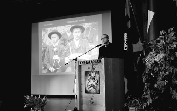 Oma pitäjäseura jo 60 vuotta pääkaupunkiseudulla![]() Niko Huttunen piti hartaushetken Karjalatalon juhlassa. |