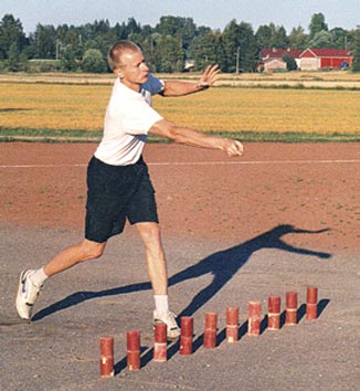 Kyykän MM-kilpailut järjestetään kahden vuoden välein. Kilpailujen järjestäjämaina ovat Venäjä ja Venäjästä itsenäistyneet valtiot. Näin siksi, että samoissa MM-kisoissa pelataan myös venäläistä kyykkää, gorodkia ja Suomi ei pysty järjestämään kisoja, koska Suomessa ei ole venäläisen kyykän kenttiä eikä välineitä. Elokuun loppupuolella Moskovassa pidettyyn MM-kisaan osallistui 13 maasta lähes 100 heittäjää. Suomesta mukana oli viisi miesheittäjää, joista kaksi entistä kylmäkoskelaista. Veli-Pekka Ehoniemi asuu Tampereella ja edustaa Helsingin Suojärviseuraa. Anssi Valtonen asuu Sauvossa ja edustaa Kylmäkosken Kyykkää. Moskovan kilpailuissa Veli-Pekka oli varsin ylivoimainen. Voittotulos 28 pistettä henkilökohtaisessa pelissä oli neljä pistettä parempi kuin toiseksi sijoittuneella Suomen Jyrki Juvosella. Suomalaisten mukaan pelikenttä oli varsin huono. Edellisen kerran Veli-Pekka Ehoniemi voitti MM:n Ukrainan Kiovassa vuonna 2004. Silloinkin voittotulos oli 28 pistettä, joka oli silloin ja on edelleen MM-kilpailujen ennätys. Vertailun vuoksi voidaan todeta, että Suomen Ennätys on 30 pistettä. Muita kertoja Veli-Pekka ei ole osallistunut MM-kilpailuihin. Veli- Pekan esivanhemmat ovat Räisälän Sakkalin kylästä. |