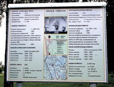 Kirkkomäelle infotaulu, joka kertoo lyhyesti entisestä Räisälän kunnasta, luterilaisesta seurakunnasta, luterilaisesta kirkosta ja kirkkomaasta. |
