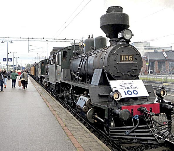 Myöhemmin aloitellessani rautatieinsinöörin uraani kuljin tuon rataosan veturin ohjaamossa työtehtävissä kymmeniä kertoja, kun Tampereella valmistettuja dieselvetureita testattiin tavarajunakäytössä vastaanottokoeajoilla 1960-luvun alkuvuosina. Veturinkuljettajalle hankala rataosa kaarteineen ja vaihtelevine nousuineen ja laskuineen tuli silloin hyvinkin tutuksi. ”Minua ei tarvinnut kahta kertaa kysyä”Kun Suomi 100-tapahtumaketjuun liittyvää Evakkojunamatkaa alettiin mainostaa, ei lippuja varanneen ystäväni Veikko Malaskan tarvinnut - taustani huomioon ottaen - kahta kertaa kysyä, kiinnostaisiko lähteä palauttamaan mieliin muistikuvia vuosikymmenien takaa! Ja vaikka odotukset matkan suhteen olivatkin korkealla, ylittyivät ne lopulta kirkkaasti, ja Haapamäen Höyryveturiyhdistyksen, Karjalaisseurojen Tampereen piirin ja Karjala-lehden organisoimasta Evakkojunamatkasta sukeutui osallistujille unohtumaton elämys, josta ei puuttunut nostalgiaa eikä vahvoja tunteita. 400 metriä pitkä matkustajajunaMatka suuntautui Tampereen asemalta entisaikojen suurelle risteysasemalle Haapamäelle, jossa kohteena ja tapahtumien keskipisteenä oli Höyryveturipuisto. Menomatka tehtiin leppoisasti kahden höyryveturivanhuksen vetämänä, jotka Juupajoen asemalla ”oikoivat väsynyttä jalkaa” lähes kolmen tunnin pysähdyksen ajan, kun taas paluumatka sujui pysähdyksittä takaisin Tampereelle varsin nopsaan dieselveturin vetämänä. Kuljetuskalustona oli evakkojunassa yhteensä 15 neliakselista puukorista museovaunua, joista 13 kpl oli matkustajavaunuja. Näistä muodostui noin 400-metrinen matkustajajuna, pituudeltaan Suomen pisin museojuna. Vetureina oli menomatkalla kaksi Tk3-tyyppistä tavarajunaveturia (”Pikku-Jumbo”), kun taas paluumatkalla oltiin Dr13-dieselveturin kyydissä.