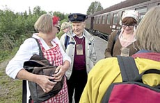 ![]() Valtter Pelkonen ja Sairalan asema, josta alkoi hänen ensimmäinen evakkotaipaleensa. Matka synnyinseudulle KarjalaanPelkosen suvun matkat Räisälään oli aloitettu jo vuonna 1990. ![]() Junamatka uudelleen evakkona oli unohtumaton elämysMatka suuntautui Tampereen asemalta entisaikojen suurelle risteysasemalle Haapamäelle. |