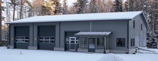 Myllyn tontille on noussut Köyliön Läntisen VPK:n palokuntatalo. Kuva joulukuussa 2017.