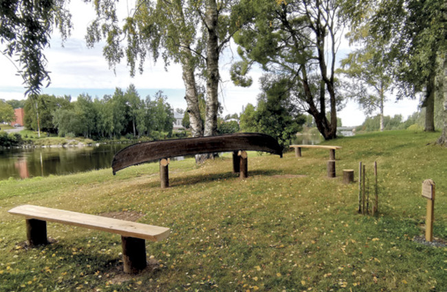 ympärille tarvittavat kuviot. Puistoalueella on veneen lisäksi kaksi haapapuusta valmistettua penkkiä. Infotaulun rosterikehikko on myös valmiina odottamassa pystytystä. Arto Suutarin valmistaman infotaulukehikon korkeus jalkoineen on 180 cm ja leveys 90 cm. Varsinainen infotila on 90x60 cm. Taulun suojaksi asennetaan pölykarbonaattilevy, joka estää varsinaisen infotaulun likaantumisen. -Tarkoitus on saada nämä asiat kuntoon vielä syksyn aikana, jolloin pidetään ”tervajaiset” ja suojataan vene ja penkit vanhan tavan mukaisesti, vakuuttavat Tuomaalan talkoomiehet. |