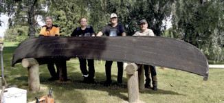 toivat Jussi Lallukan vuonna 1943 valmistaman mäntypuisen veneen rantapuistoon ja tekivät veneelle