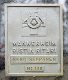 haudatun korpraali Eero Seppäsen ritarilaatta. Suomen lentomerkki myönnetään ohjaajalle,