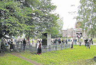 Huomionosoitus sankaripatsaalla kirkon 100-vuotismuistojuhlan yhteydessä 2012. Kuvaaja: H.Haikonen.