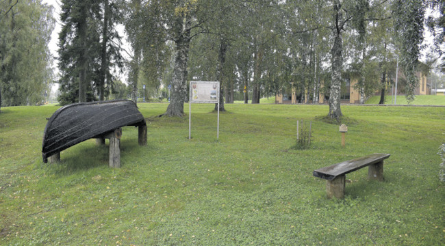 Antti Ruponen esitteli jo aiemmin paikalle tuodun veneen historian ja perjantaina pystytetyn infotaulun