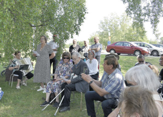 Räisäläpuiston avajaistilaisuudessa oli mukana satakunta henkilöä, jotka saivat nauttia ohjelmasta, kauniista säästä ja tarjoilusta.