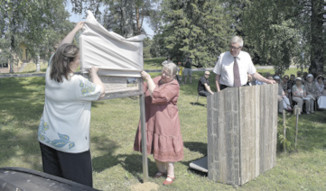 17.6.2023 useita vuosia vireillä ollut Räisäläpuisto. Kokemäen Karjalaseuran puheenjohtaja