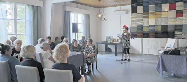 Olin koonnut yhdessä Tiinan kanssa esille esineistöä ja muistoja opiston historiasta vuosien varrelta. Kellarissa pyöri myös diaesitys tämän talon tarinasta. Talossa sai kulkea kerroksia ylös ja alas, tutkia huoneita ja istahtaa välillä kahvikupposelle. Vilinä oli kuin muurahaispesässä, kun vierailijat seikkailivat kiinnostuneina. Lisäksi pihapiirissä olevassa entisessä asuntola rakennuksessa taiteilija Maria Patrikainen toivotti tervetulleeksi työhuoneelleen. Marialtakin löytyi sukujuuria Karjalaan.