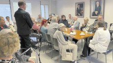 Juhani Kaatosen tarinoita kotiseutumatkoilta sekä säätiön perustamisen ja toiminnan historiasta kuultiin kahvittelun yhteydessä.