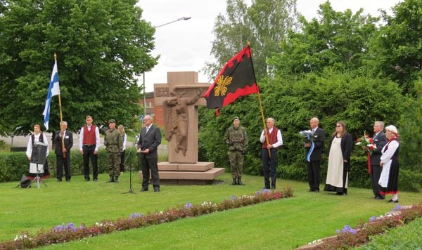 Kunnianosoitus Säkylän sankarihaudoilla.